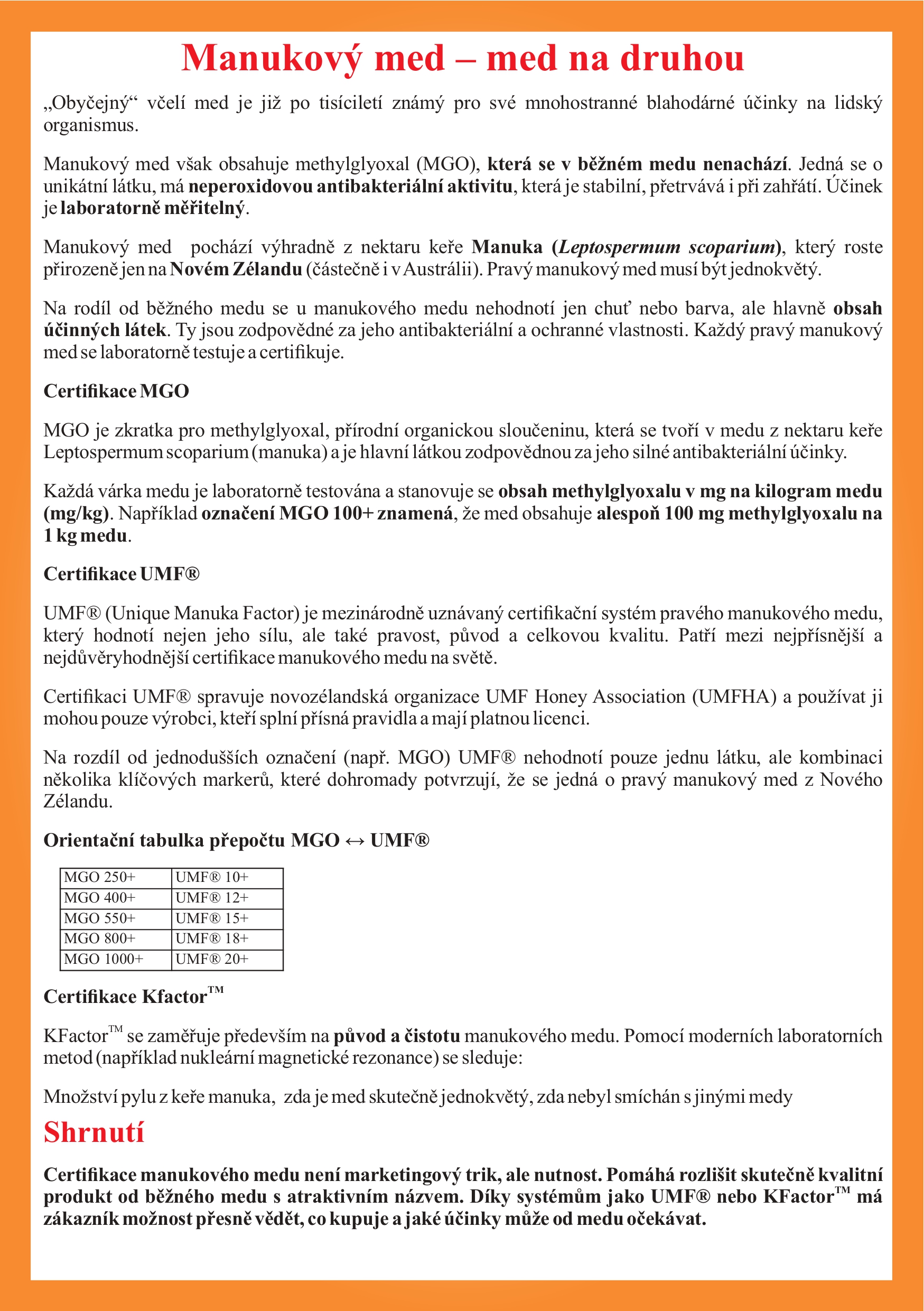 WEDDERSPOON’S MANUKA MED Certifikace KFactor